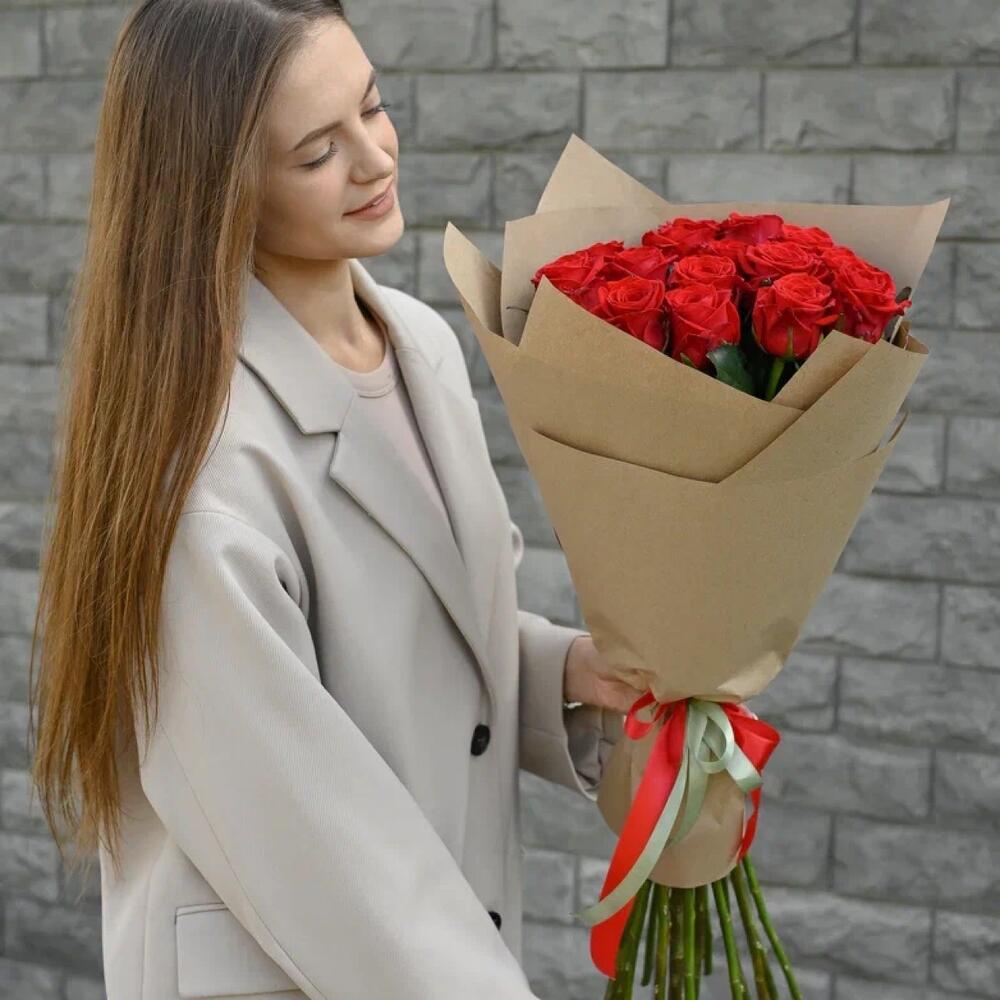 Классический букет из ароматных красных роз 60см в крафтовой упаковке, которые не оставят никого равнодушным!